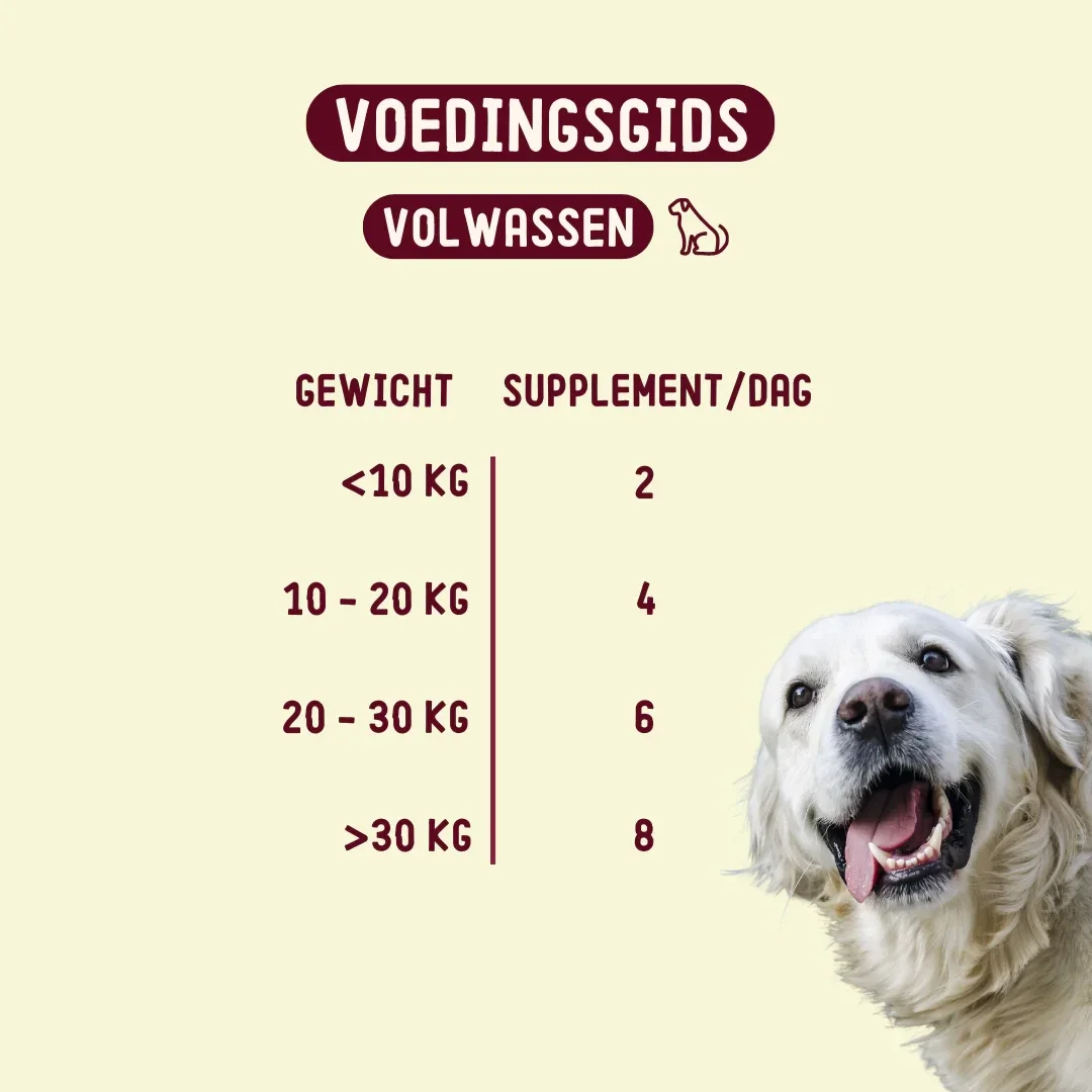 Let op: Bevat colostrum, niet geschikt voor honden met een rundvleesallergie.