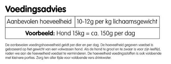 Vit. A (3a672a) 18000 I.E. Vit. D3 (E671) 1800 I.E. Vi. E (3a700) 60 mg Vit. K2 1.37mg Vi. B1 (3a821) 13.2 mg Vit. B2 7.68 mg Niacine (3a315) 30 mg Vit. B5 (3a841) 24.34 mg Vit B6 (3a381) 7.20 mg Vit B12 72 mcg Biotine (3a880) 312 mcg Vit B9 (3a316) 1.20 mg Vit C (3a300) 60 mg Beatine (3a925) 300 mg IJzer Sulfaat monohydraat 84 mg Kaliumjodide (3b201) 2.04 mg Koper Sulfaat Pentahydraat 4.80 mg mangaanoxide 57.60 Zinkoxide (3b603) 90 mg Seleen organisch CNCM 1-3399 (3b8.12) 0.18 mg